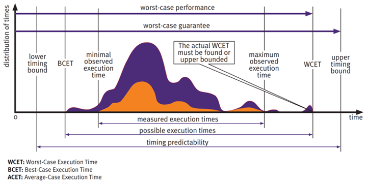 En fait, les circonstances qui déclenchent le WCET réel peuvent être si rares qu'elles ne sont jamais observées en laboratoire. Cela ne signifie pas pour autant que cela ne se produira jamais sur le terrain. Il s'agit plutôt d'un échec potentiel, donc susceptible de se produire, qui pourrait entraîner des blessures ou la mort. C'est ce que les normes de sécurité fonctionnelle visent à prévenir. L'objectif de l'analyse WCET est d'utiliser les temps d'exécution observés pour estimer le WCET.