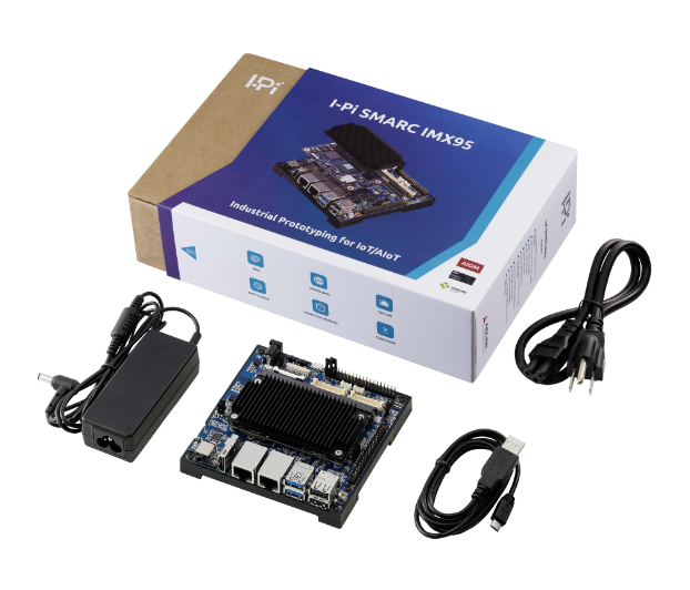 Enfin, pour être complet, notons qu'ADLink propose aux développeurx un kit complet (carte porteuse, cordons, alimentation...), baptisé I-Pi SMARC IMX95 afin de débuter rapidement une application sur l'i.MX95 installé sur le module LEC-IMX95.