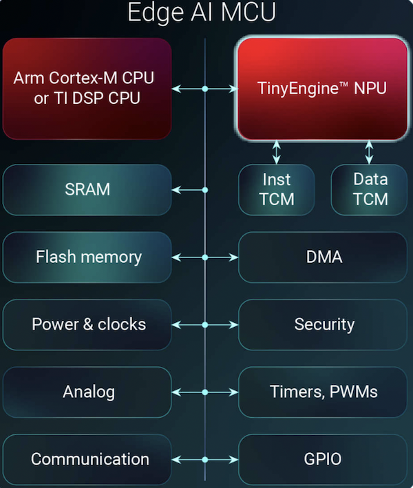 Concrètement, TI a intégré un coeur de traitement neuronal développé en interne, le TinyEngine, dans les microcontrôleurs MSPM0G5187 à coeur Arm Cortex-M0+ et AM13Ex à coeur Arm Cortex-M33, introduits ce jour.