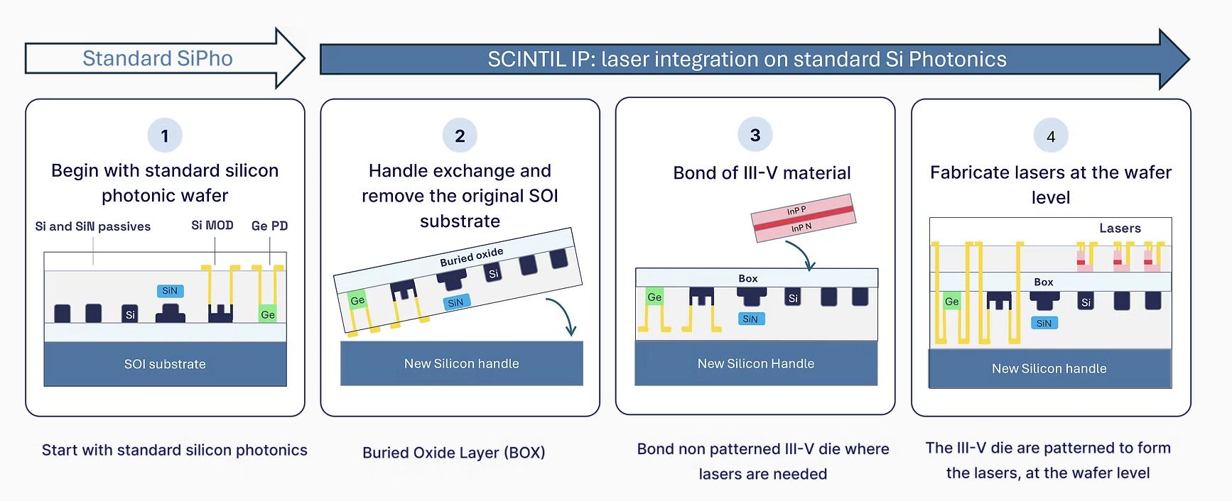 La technologie de la start-up s'appuie sur plus de 15 ans de recherche menée au CEA-Leti sur les lasers hétérogènes à semi-conducteurs III-V sur silicium, la photonique sur silicium et le packaging 3D. Le circuit monopuce de Scintille qui intègre à la fois des composants actifs et passifs fabriqués à partir de procédés de photonique sur silicium Cmos standard, ainsi que les amplificateurs et lasers optiques III-V, apporte selon la société un niveau d’intégration élevé (qui permet donc de mettre en œuvre des lasers multi-longueurs d’onde sur des circuits photoniques en silicium) permet de paralléliser les communications pour passer de façon évolutive de 800 Gigabit/s à 3 200 Gigabit/s avec des puces compactes qui peuvent être produites en gros volume avec des procédés de fabrication standard.