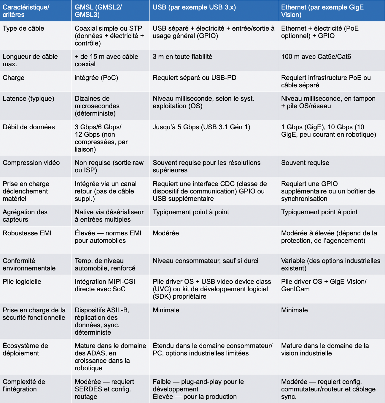 GMSL vs USB vs Ethernet : des compromis en matière de vision robotique