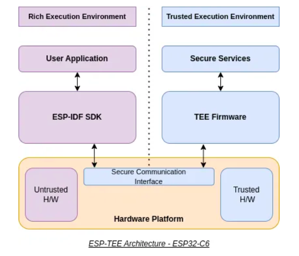Ainsi, ce microcontrôleur doté d'un coeur de processeur RISC-V et qui intègre les connectivité Wi-Fi 6, Bluetooth 5, et IEEE 802.15.4 (Thread/Zigbee), élève les normes de sécurité pour les architectures RISC-V ouvertes grâce à cette certification PSA-L2. Le circuit ESP32-C6 adhère de fait à ce modèle de sécurité défini par l'orgnanisme PSA Certified avec au cœur de son modèle de sécurité le framework ESP-TEE (Trusted Execution Environment) conçu pour améliorer la sécurité des SoC d'Espressif. Et qui permet de créer un environnement d'exécution protégé pour protéger les informations et les opérations sensibles.