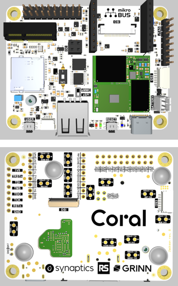 Le fournisseur américain de semi-conducteurs Synaptics, a profité de la tenue du salon Embedded World 2026 en mars dernier, pour lancer la carte de développement Coral, en édition limitée, développée en partenariat avec le distributeur RS et la firme polonaise Grinn. Une carte architecturée autour du circuit Astra SL2610 de Synaptics dont une des originalités est d’intégrer la plate-forme de calcul d’IA Torq de la société, fondé sur le coeur neuronal Coral de Google Research.