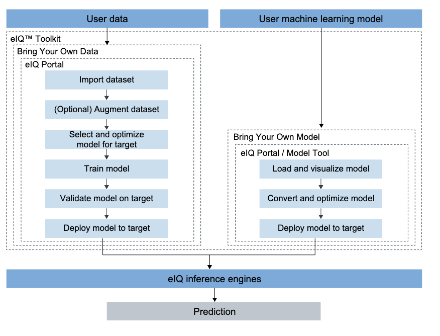 La suite d'outils complète, comprenant eIQ Time Series Studio, eIQ GenAI Flow et eIQ Agentic AI Framework, ainsi que l'eIQ AI Toolkit est accessible dans le cloud à travers eIQ AI Hub ou téléchargeable pour une utilisation sur site.