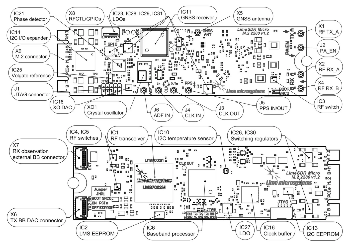 La version LimeSDR Micro est équipée d'un processeur en bande de base LA9310 de NXP et d'un émetteur-récepteur LMS7002M de Lime Microsystems, l’ensemble constituant une plateforme entièrement programmable par logiciel procurant des performances élevées en termes de taille, de poids, de consommation et de coût.
