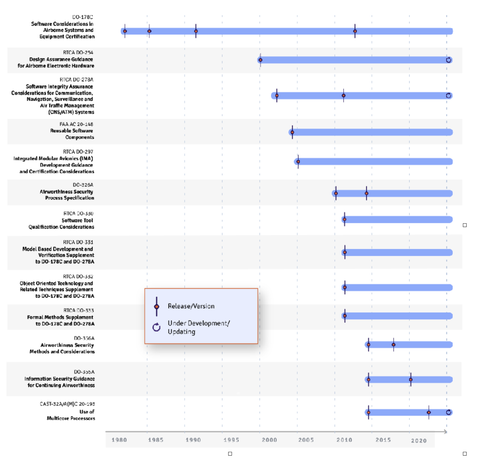 - Le cadre réglementaire de navigabilité évolue rapidement, notamment dans le domaine des logiciels. les normes en vigueur depuis des décennies font désormais l’objet de mises à jour beaucoup plus fréquentes, et de nombreuses nouvelles normes ont été récemment publiées ou sont en cours d’élaboration. Par conséquent, le coût, le temps et le risque liés à la conformité à ces normes seront des facteurs déterminants du succès d’un nouvel avion ou de tout autre système volant.
