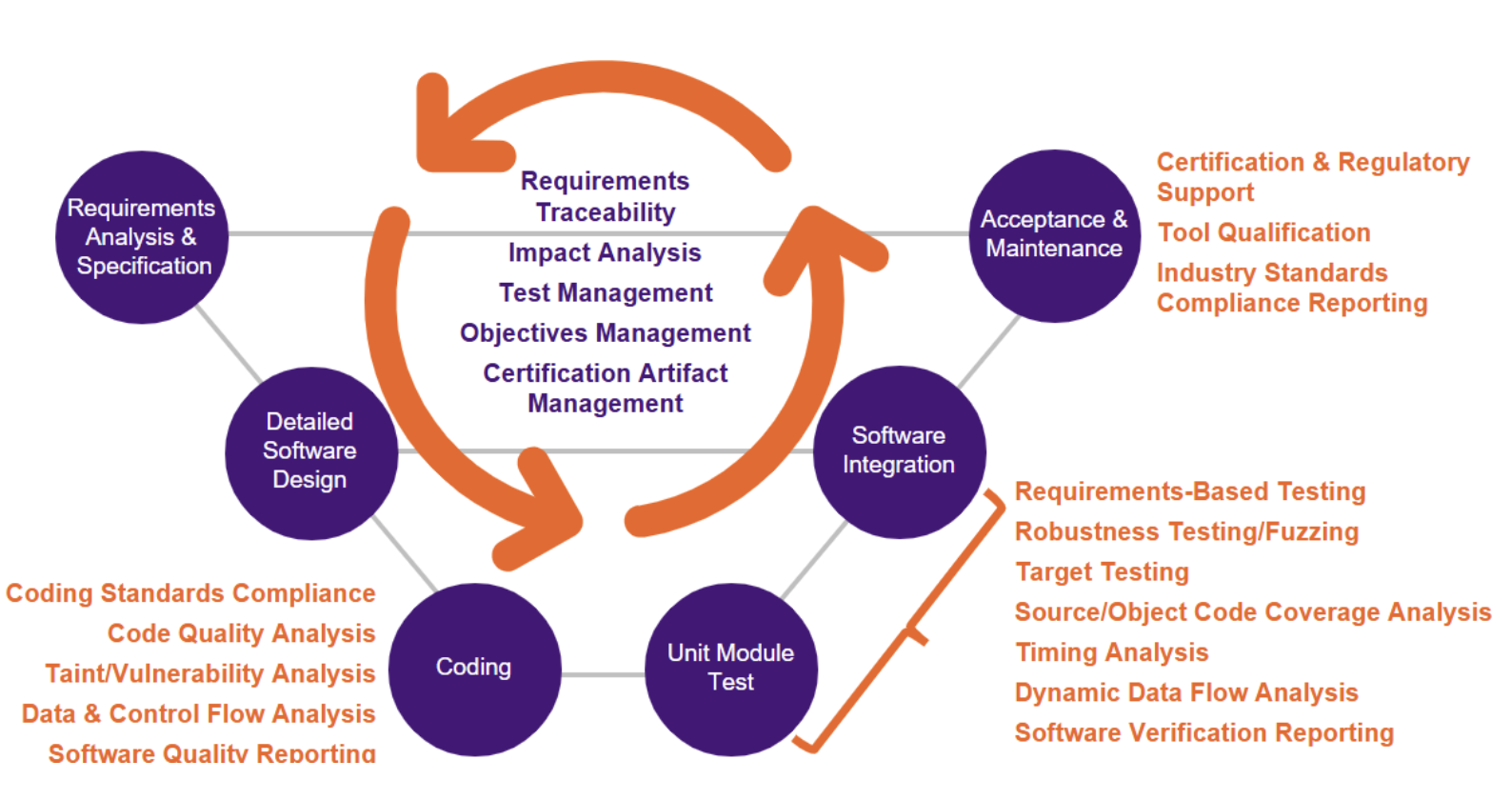 La conformité est accélérée, les risques sont atténués et un code de meilleure qualité est produit. Cette exigence de traiter à la fois la sûreté et la sécurité illustre pourquoi il est essentiel que la vérification soit extensible et puisse s'adapter à des besoins spécifiques. Par exemple, les outils de développement doivent permettre le développement et la vérification simultanée des logiciels devant obtenir les certifications DO-178C et DO-326B en même temps.