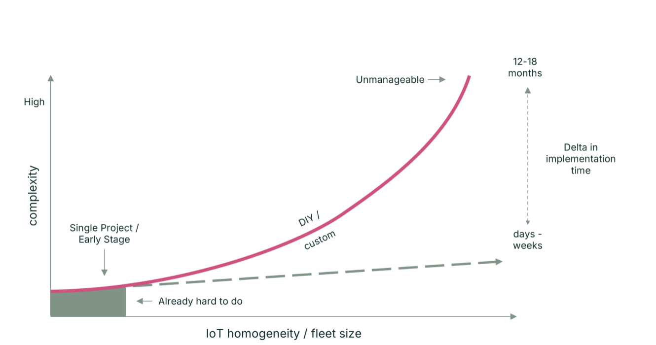 Dans ce marché très fragmenté, les fabricants d’appareils ont l’habitude de créer leurs propres systèmes matériels et logiciels privés. Leur premier réflexe est donc généralement de créer également leur propre solution de cybersécurité. Mais, comme nous le verrons, cela peut s’avérer coûteux, long et difficile à mettre en œuvre. La mise en place d’une solution commune créée, testée, validée et maintenue par un tiers peut s’avérer une meilleure option.