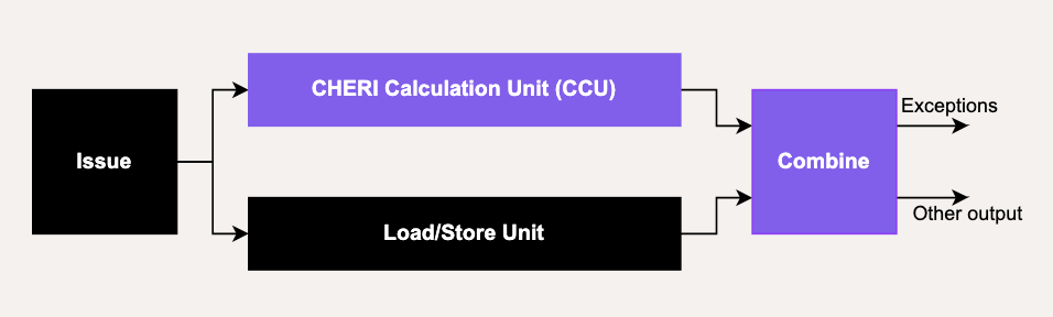 Sur cette plate-forme le fichier de registres et certaines registres de contrôle et d’état (CSR, Control ans Status Register) sont étendus à 129 bits pour prendre en charge les capacités de Cheri. Le système de mémoire est aussi étendu pour gérer de manière atomique les balises de capacité de Cheri. La plupart des opérations Cheri sont ici implantées dans l'unité de commande centrale (CCU, Cheri Control Unit) , y compris tous les contrôles de sécurité. Ainsi, chaque instruction est envoyée à l’unité CCU)- avec une autre unité d’exécution et leurs sorties sont combinées lors de la validation de l'instruction.