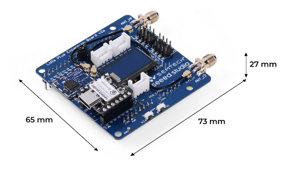 La carte est également équipée d'un écran OLED (128 × 64 pixels), de trois connecteurs Grove pour l'extension, d'un port USB Type-C pour l'alimentation et le débogage ainsi que de deux connecteurs SMA (Sub-GHz et 2,4 GHz).