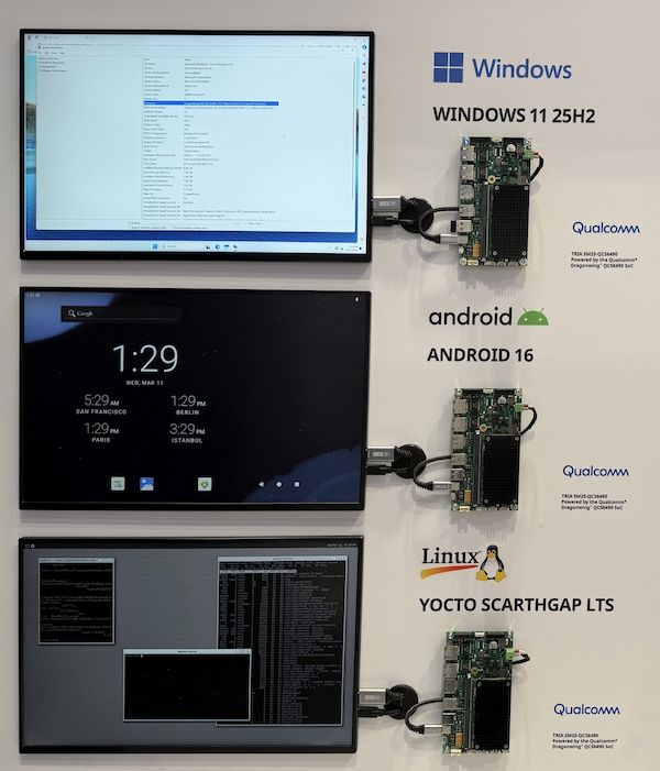 De son côté, Windows 11 IoT sur Arm s’appuie sur bootloader (logiciel d’amorçage) conforme au standard UEFI de Qualcomm. Les utilisateurs peuvent ainsi déployer Windows sur Arm sur les environnements embarqués et industriels, marquant ainsi une rupture après plusieurs décennies de "mariage" avec les architectures x86. Cette migration possible des systèmes fondés sur Windows ne compromet plus, selon Tria, la compatibilité des applications et permet à Windows de fonctionner sur du matériel avec une plus faible consommation énergétique et des coûts systèmes réduits.