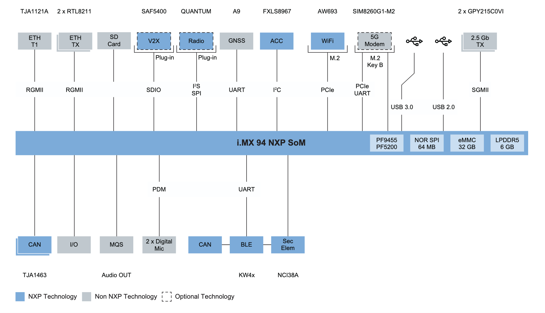 Pour rappel, la puce-système i.MX 94 de NXP est architecturée autour de quatre coeurs Arm Cortex-A55 associés à deux coeurs Arm Cortex-M7 et deux coeurs Arm Cortex-M33. Il est le premier processeur d'applications i.MX de la société à intégrer un commutateur Ethernet à 2,5 Gigabit/s assurant une mise en réseau définie par logiciel et facilitant la transition vers les véhicules autonomes.