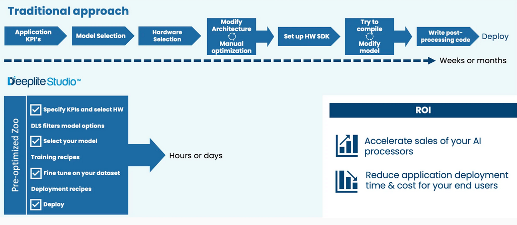 Enfin, DeepLite propose une technologie d’optimisation personnalisée pour différentes plateformes matérielles, telles que les processeurs RISC-V ou les cœurs Arm Cortex-M, afin de réduire le nombre d'accès mémoire et la latence.