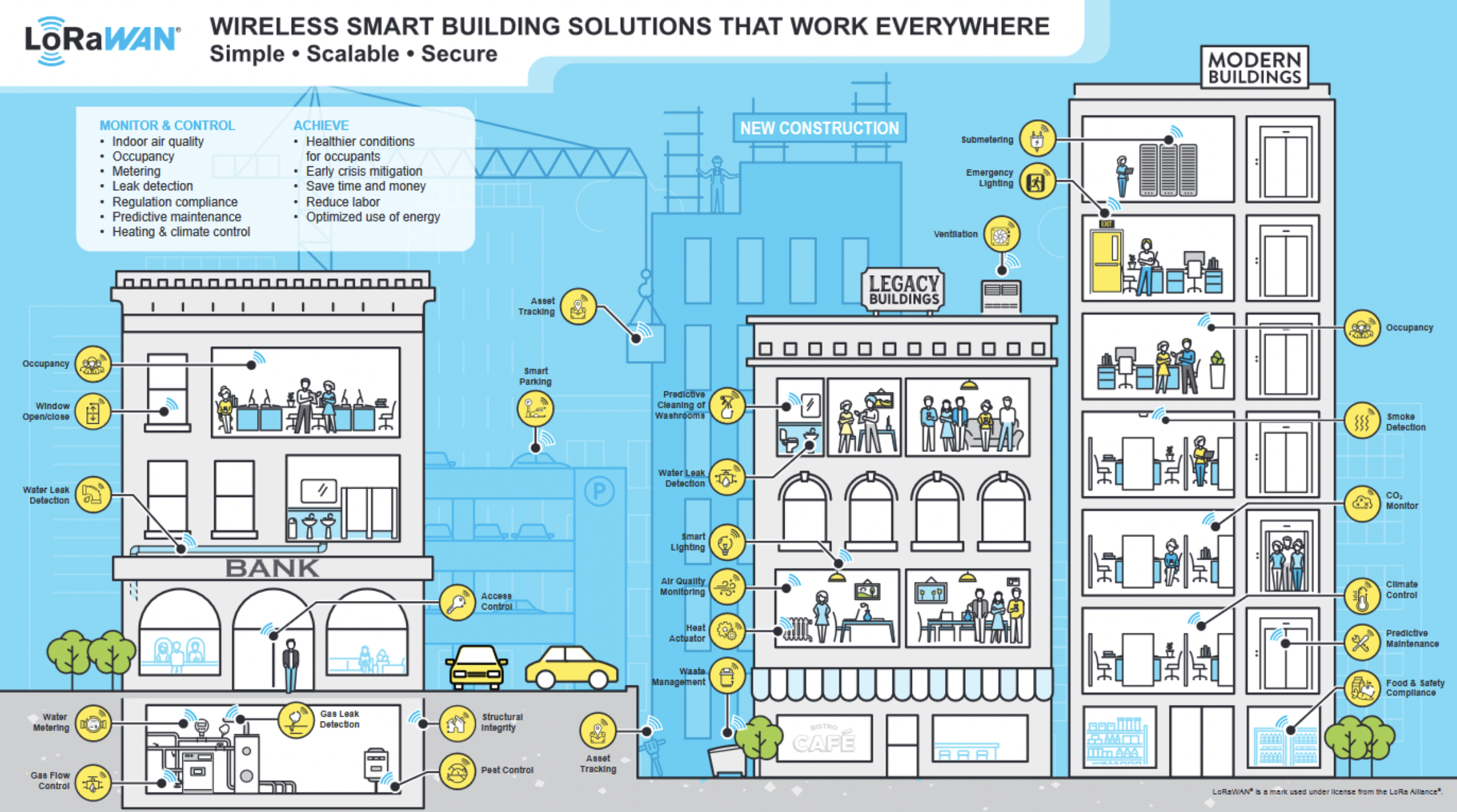 La LoRa Alliance rappelle que la gestion des bâtiments s'est traditionnellement appuyée sur des systèmes câblés, mais constate que ces derniers sont aujourd'hui remplacés de plus en plus fréquemment par des technologies sans fil qui offrent un déploiement plus rapide et plus flexible. Parmi les options disponibles, la technologie LoRaWAN se distingue, selon la LoRa Alliance, comme la seule technologie sans fil capable de traverser les murs tout en conservant une faible consommation d’énergie, une combinaison qui a accéléré son adoption dans le secteur du bâtiment intelligent.
