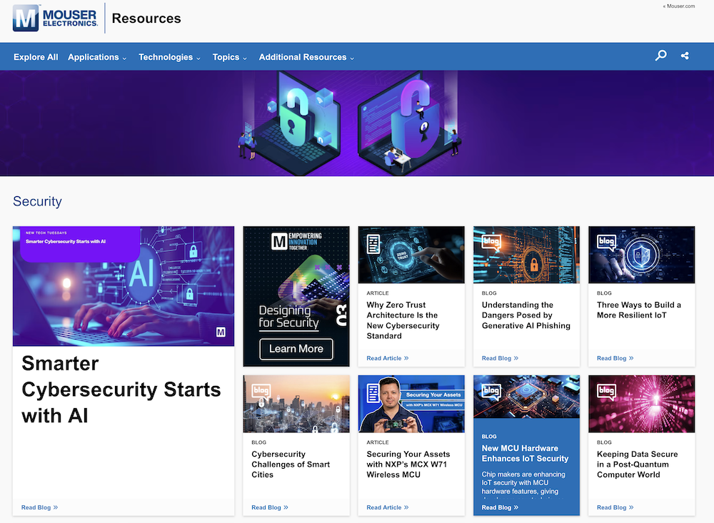 Le distributeur Mouser annonce le lancement, sous la forme d'un mini site web, d'un centre de ressources qui propose des articles complets, des blogs, des eBooks et des produits provenant de l’équipe technique de Mouser et de ses partenaires fabricants de confiance dans le domaine de la cybersécurité.