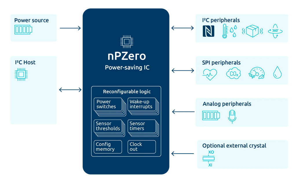 Pour rappel, le circuit intégré nPZero à ultra-basse consommation met hors tension un microcontrôleur hôte, prend le relais et gère de manière autonome la mise sous tension, la configuration et la lecture des données provenant de un à quatre capteurs ou autres périphériques. Déclenché par des règles définies par l'utilisateur, le circuit nPZero alimente l'hôte et lui redonne le contrôle. Ce qui permet à ce dernier de rester hors tension pendant de longues périodes, le temps que le système détecte et réagisse aux événements pour lesquels il est programmé. Ainsi, à travers cette approche inédite, les systèmes IoT sans fil classiques alimentés par batterie peuvent réduire leur consommation énergétique totale jusqu'à 90 %, selon Nanopower.