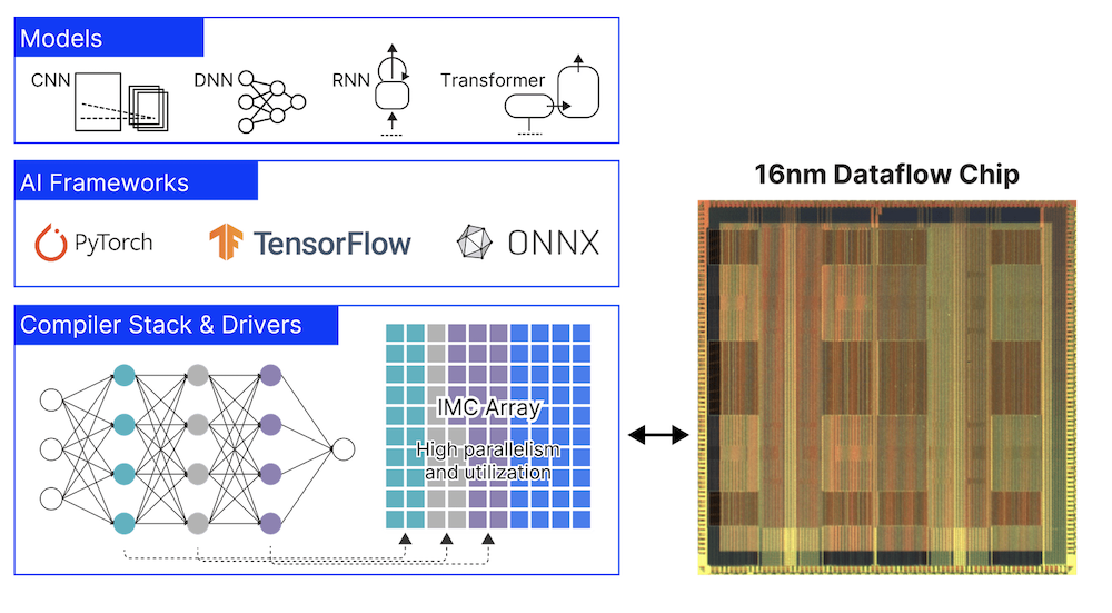 L’architecture de calcul analogique en mémoire résistante au bruit prônée par EnCharge AI a pour ambition de réduire les besoins en énergie liés à l’exécution de charges de travail d’inférence d’IA conventionnelles et génératives. En intégrant un traitement analogique avec une mémoire hautement efficaces, les accélérateurs d’IA d’EnCharge nécessitent, selon la socité, jusqu’à 20 fois moins d’énergie pour exécuter des charges de travail d’IA par rapport aux principales puces d’IA disponibles actuellement sur le marché. Cette architecture est associée à une plateforme d’outils logiciels conçus pour optimiser l’efficacitéet les performances de la technologie d’EnCharge AI.