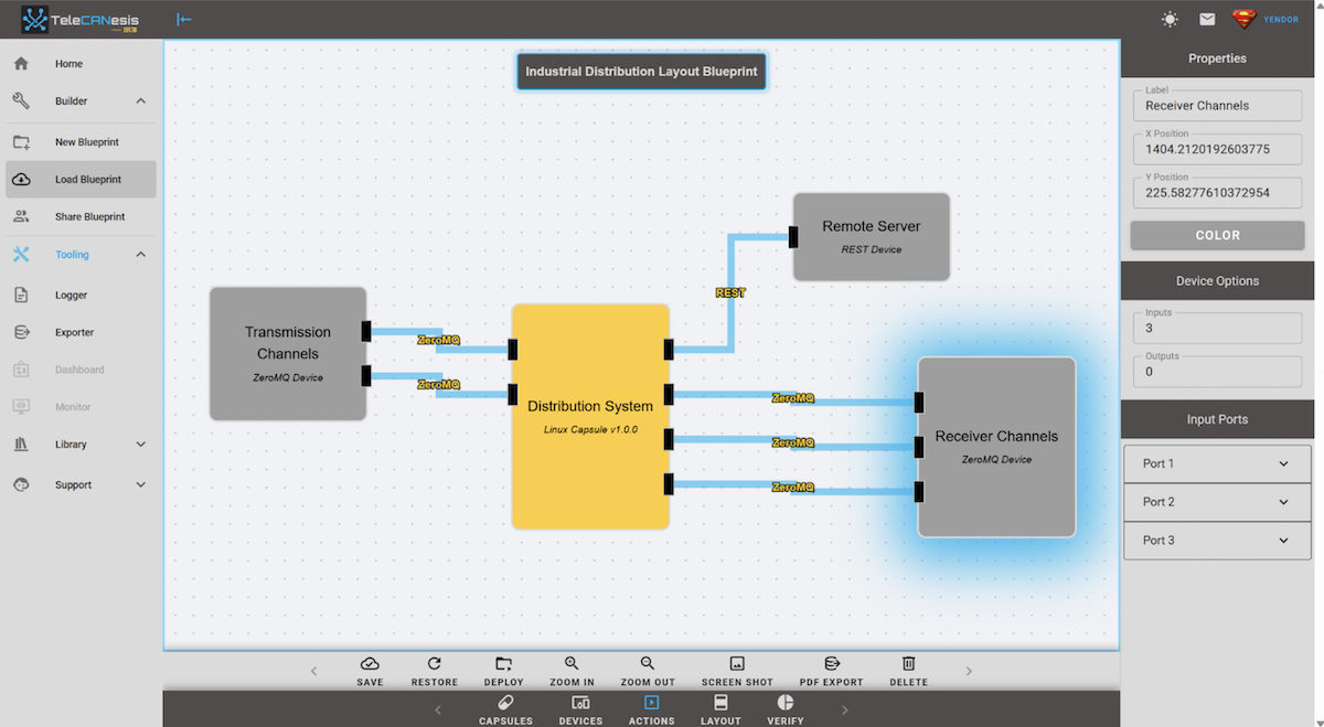 L’environnement se compose de trois éléments principaux. D’abord, les architectes système peuvent exploiter TeleCANesis Hub et son interface graphique web intuitive avec un approche de type “glisser-déposer”grâce à des modèles intégrés assurant la configuration rapide du matériel et de l'architecture des bus et des protocoles industriels courants.