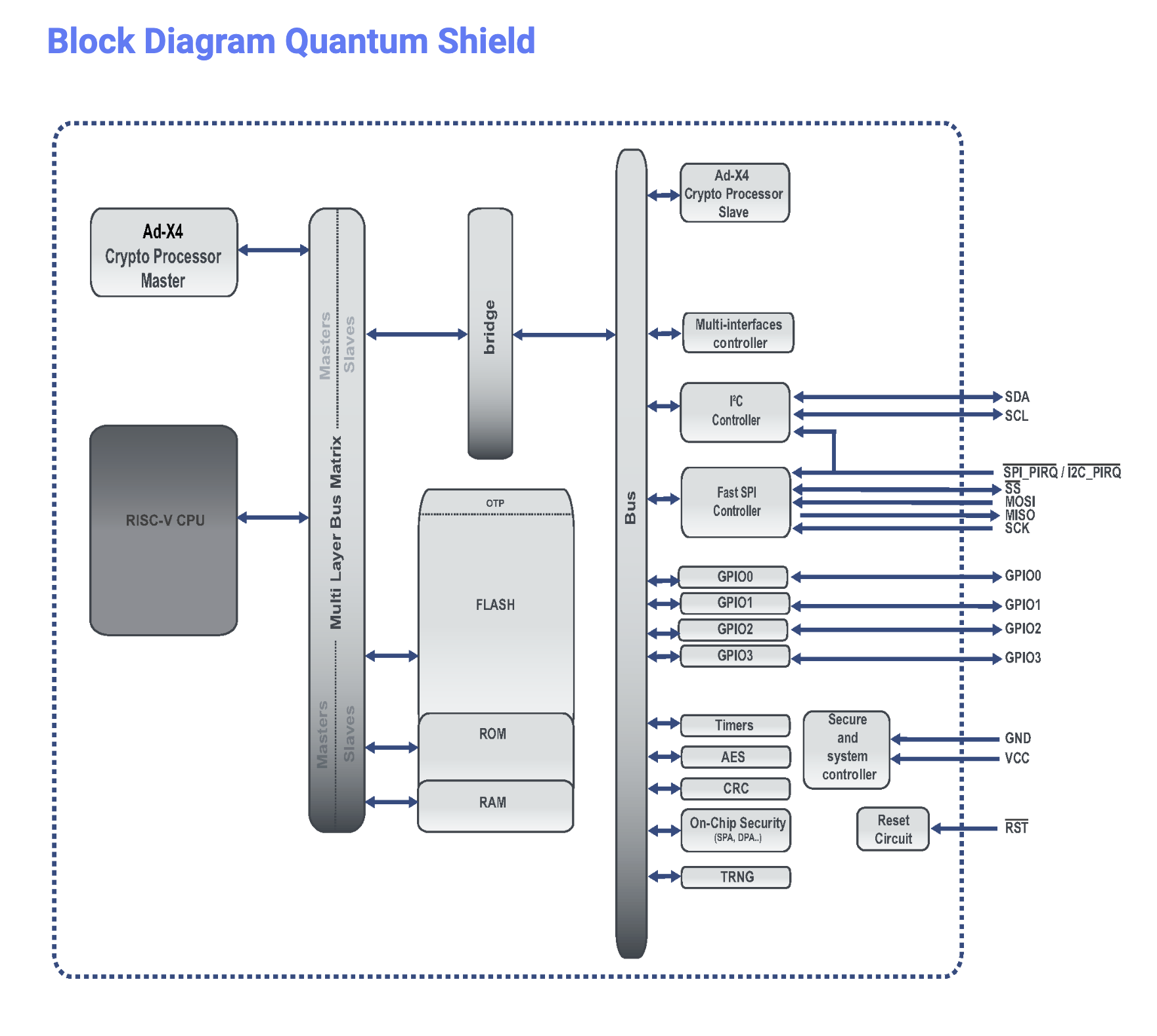 Dans le détail, le Quantum Shield QS7001 intègre notamment les technologies de cryptage ML-KEM (CRYSTALS-Kyber) et ML-DSA (CRYSTALS-Dilithium), algorithmes PQC sélectionnés par le NIST, ici directement implantées au niveau du silicium.