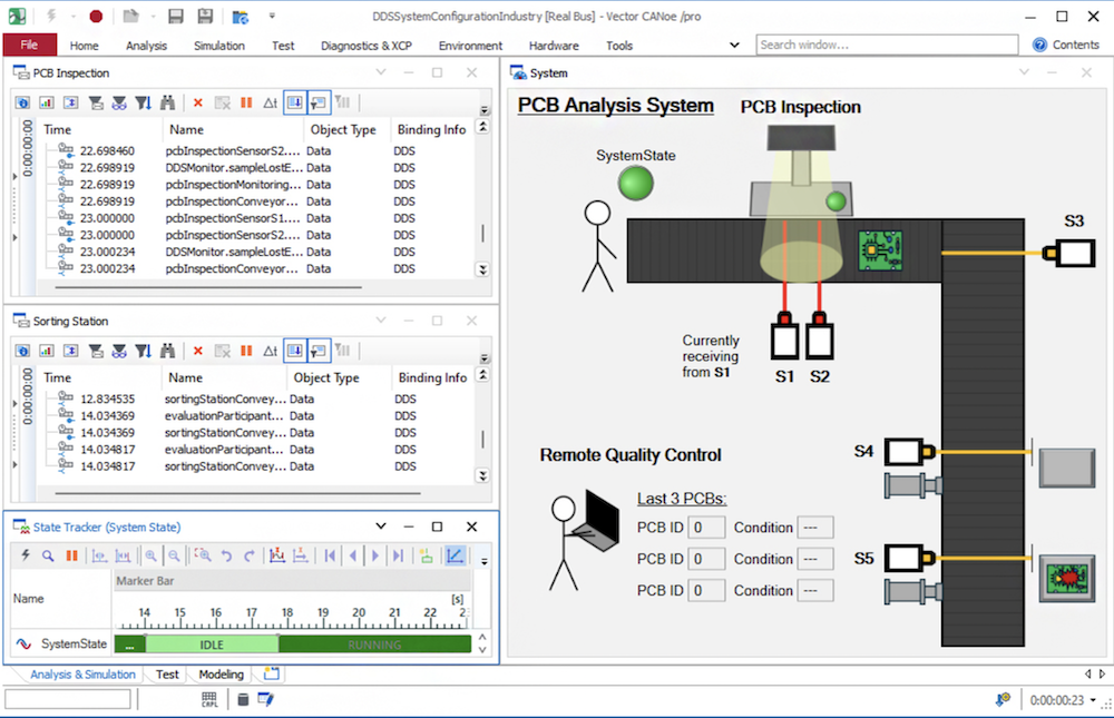 Cette option s'adresse aux développeurs et testeurs de systèmes distribués dans les secteurs de l'automobile, des technologies médicales et de l'Industrie 4.0. L’outil permet notamment de simuler rapidement des participants DDS (Domain Participants), d'adopter des descriptions IDL (Interface Description Language) existantes et d'automatiser des tests complexes à travers les langages CAPL (CAN Access Program Language, langage compilé proche du C qui permet d’écrire des scripts), C# ou Python. L'affichage graphique des communications DDS et Ethernet dans la fenêtre Trace de CANoe, ainsi que la configuration grâce à un langage texte, simplifient considérablement le travail, selon Vector.