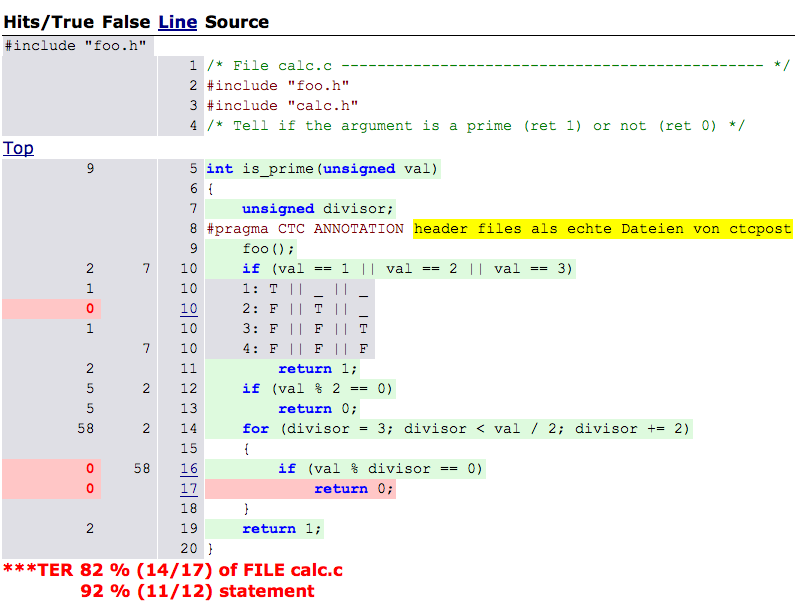 Par ailleurs, l’outil apporte la notion d’“annotations” qui autorise l’ajout d’un commentaire au code source afin, par exemple, d’expliquer pourquoi certaines portions de code ne sont pas exécutées au cours des tests. Enfin, Testwell CTC++ 8.0 optimise les opérations de fusion des données de couverture des fichiers de code testés indépendamment, via l’utilitaire de ctcxmlmerge. En d’autres termes, la couverture des instructions est recalculée sur les fonctions, sur les fichiers et sur le niveau global dans le rapport de couverture fusionné.